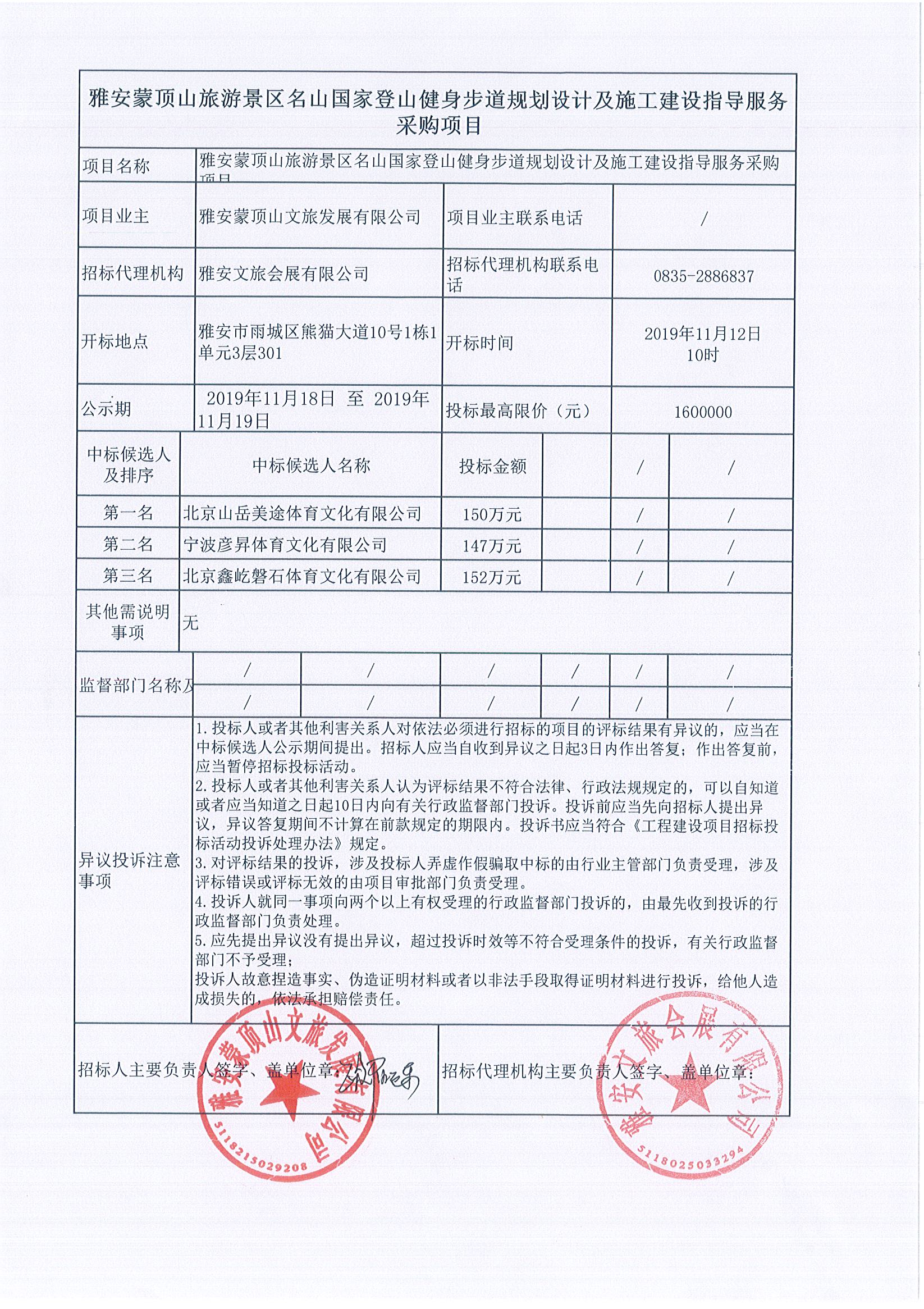雅安蒙頂山旅游景區(qū)名山國家登山健身步道規(guī)劃設(shè)計及施工建設(shè)指導服務(wù)采購項目結(jié)果公示