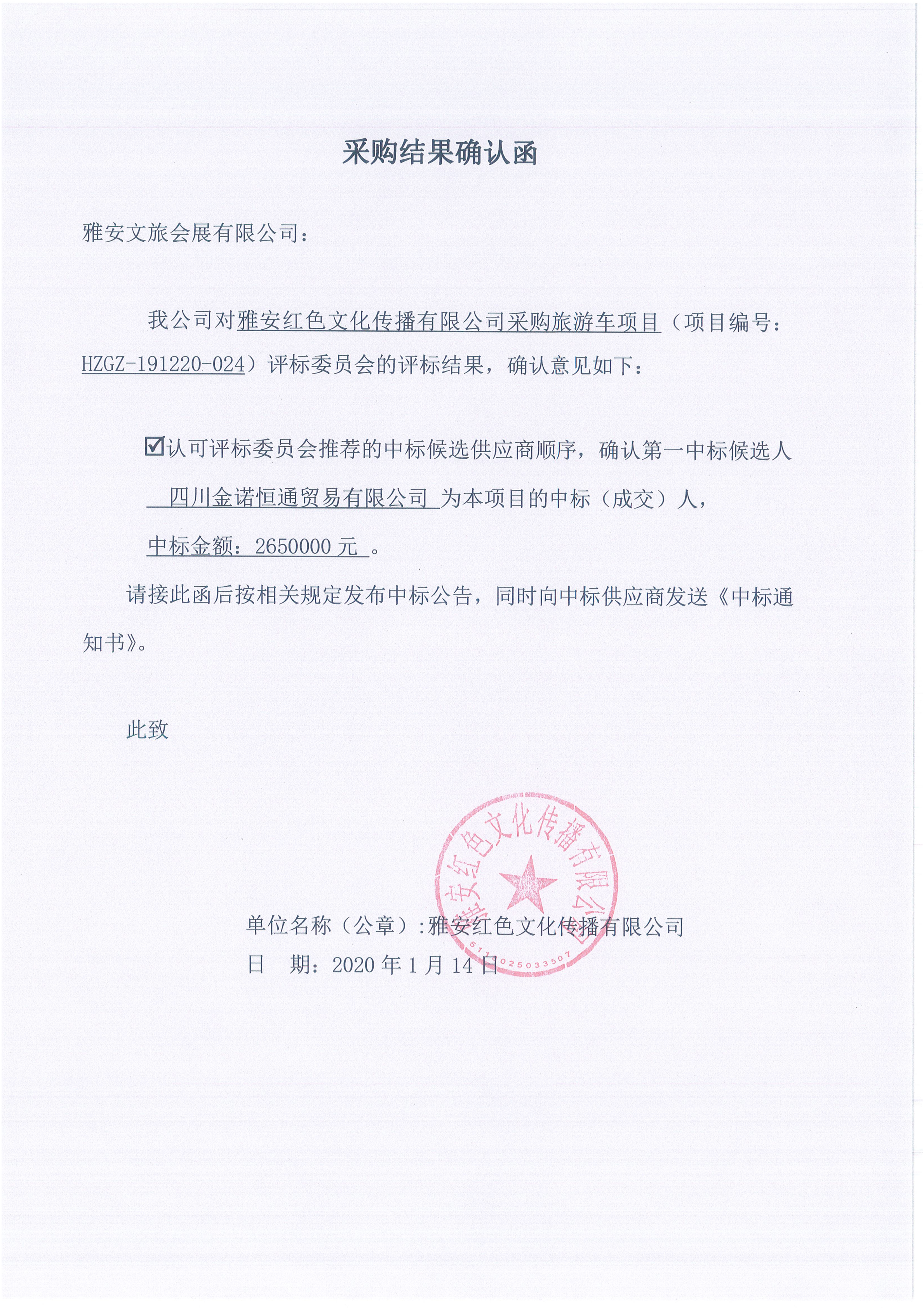 雅安紅色文化傳播有限公司采購(gòu)旅游車(chē)項(xiàng)目結(jié)果公示