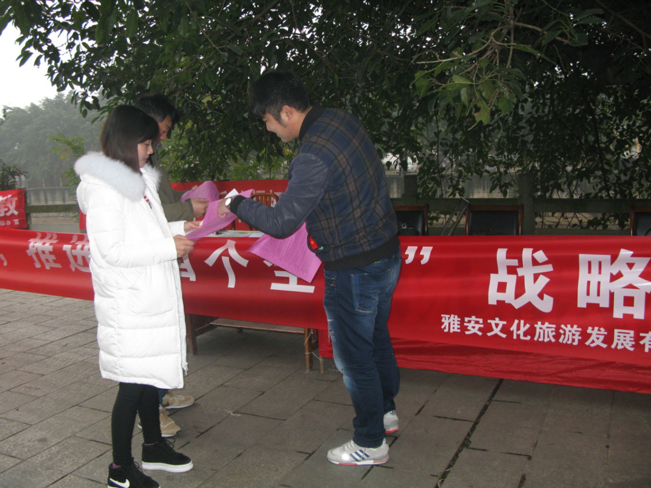 通過開展宣傳活動,使公司全體員工深入宣傳了解“十三五”時(shí)期的發(fā)展理念、主要目標(biāo)和重大舉措 ,引導(dǎo)廣大干部職工把思想統(tǒng)一到六中全會精神上來,用法治的理念來推動公司的發(fā)展,提升雅安旅游品牌形象。
