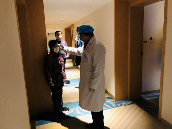 2月8日 9:32分,華興街社區(qū)醫(yī)院及東城派出所到酒店對(duì)1308、1310的客人進(jìn)行了例行測溫檢查,無異常發(fā)現(xiàn)。