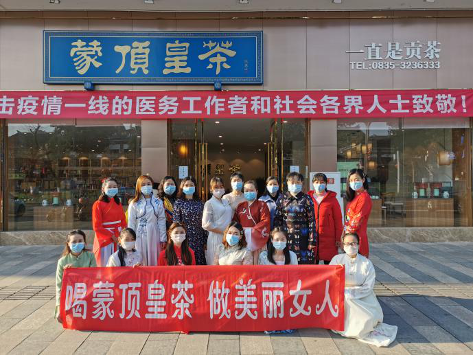 蒙頂皇茶團(tuán)隊(duì)全體女士著盛裝,在接受了公司男同事代表祝福后,整隊(duì)前往蒙頂酒莊,學(xué)習(xí)酒文化、交流個(gè)性化定制業(yè)務(wù)。