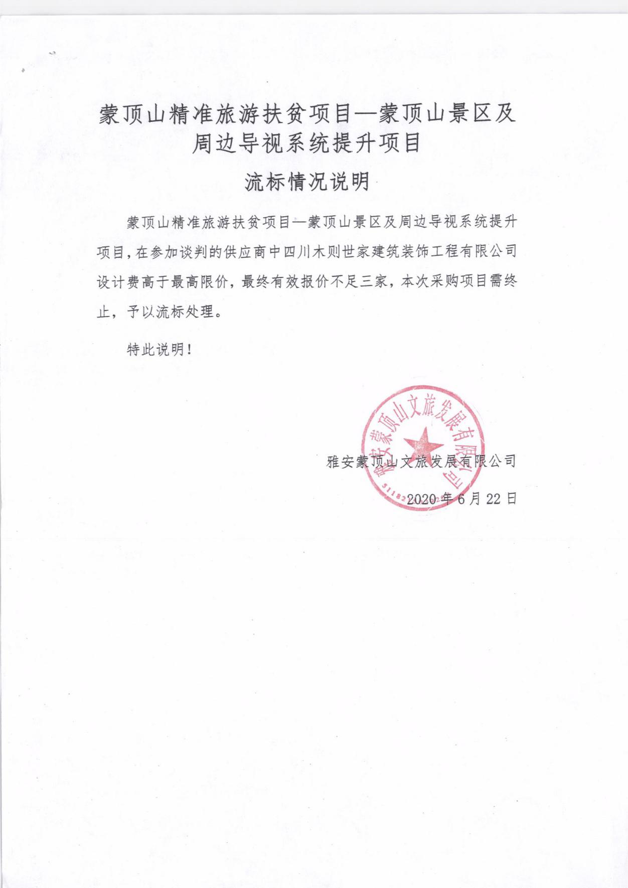 蒙頂山精準(zhǔn)旅游扶貧項(xiàng)目—蒙頂山景區(qū)及周邊導(dǎo)視系統(tǒng)提升項(xiàng)目 流標(biāo)情況說(shuō)明