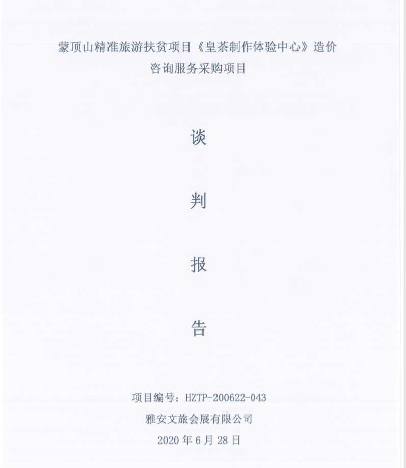 蒙頂山精準(zhǔn)旅游扶貧項(xiàng)目《皇茶制作體驗(yàn)中心》造價(jià)資訊服務(wù)采購(gòu)項(xiàng)目