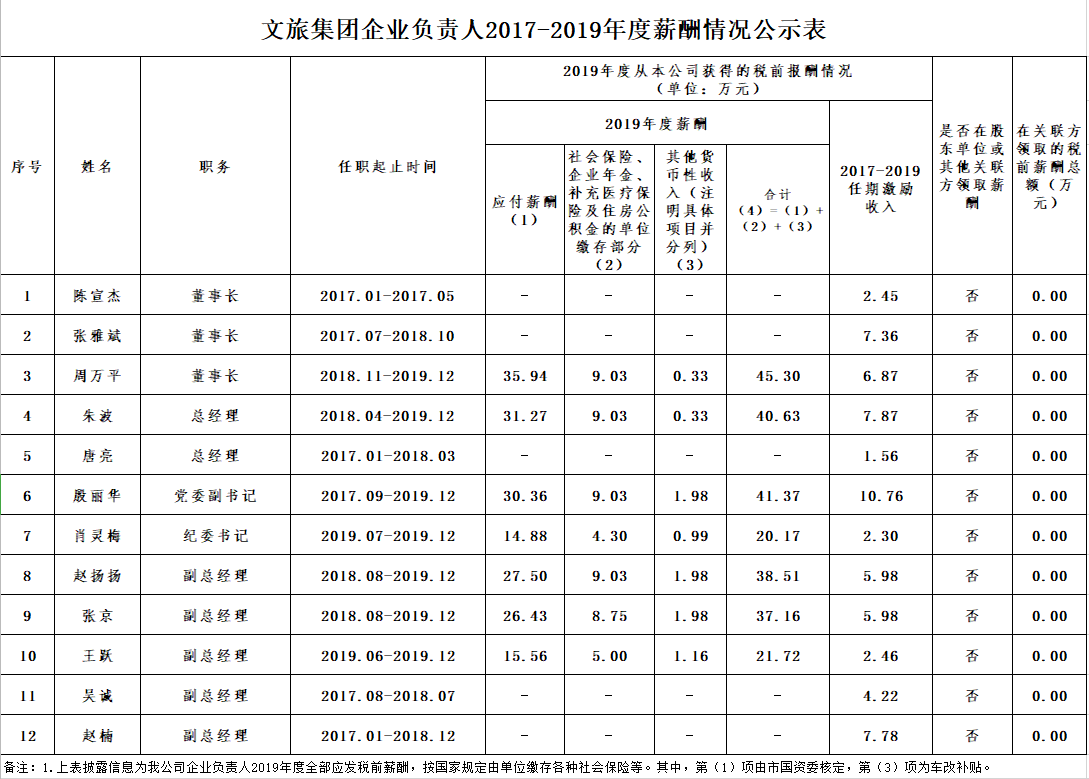 文旅集團企業(yè)負責(zé)人2017-2019年度薪酬情況公示表