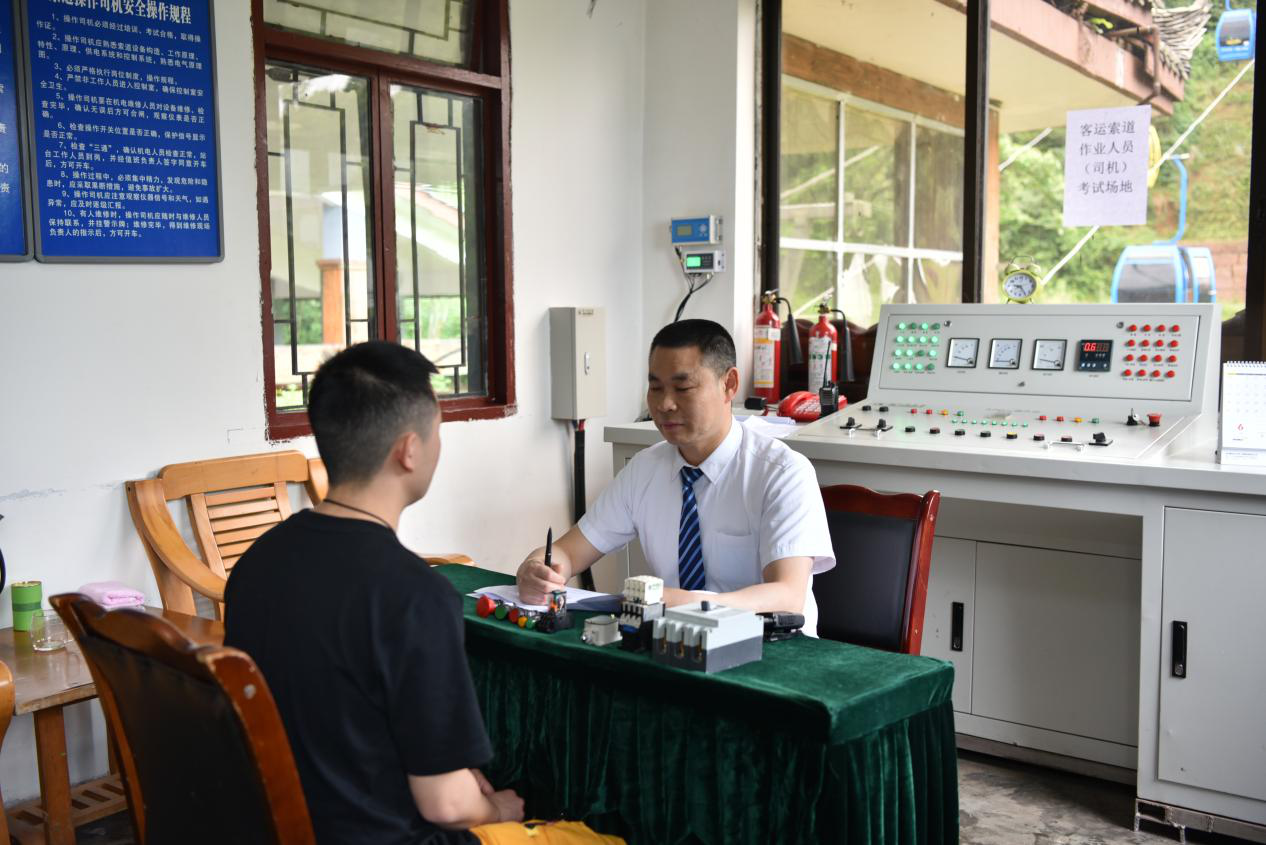 2021年6月21日上午,四川省特種設(shè)備檢驗(yàn)研究院考試中心主任陽曉薇一行組織全省第一期客運(yùn)索道作業(yè)人員在蒙頂山索道進(jìn)行實(shí)操考試,共計(jì)60余人。