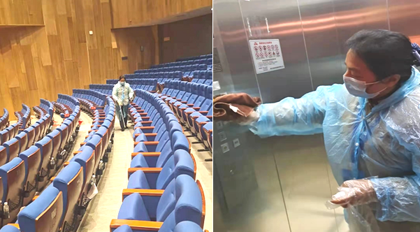 按市疾控中心消殺防疫工作要求,認(rèn)真開展疫情防控工作。一是認(rèn)真開展體溫監(jiān)測,每日為員工監(jiān)測體溫并做好登記,發(fā)現(xiàn)體溫異常及時(shí)上報(bào);二是按疫情防控要求認(rèn)真開展消殺工作,每日會前、會后對會議桌桌面、座椅扶手、過道、電梯、客房等區(qū)域進(jìn)行消殺,做好消殺記錄,現(xiàn)場拍照并按時(shí)上報(bào)疾控中心;三是防疫物質(zhì)儲備到位到點(diǎn),在會場門口、餐廳、房間等區(qū)域放置口罩、消毒濕紙巾、消毒凝膠等防疫物質(zhì),安排專人主動為代表們提供防疫物質(zhì)服務(wù)。