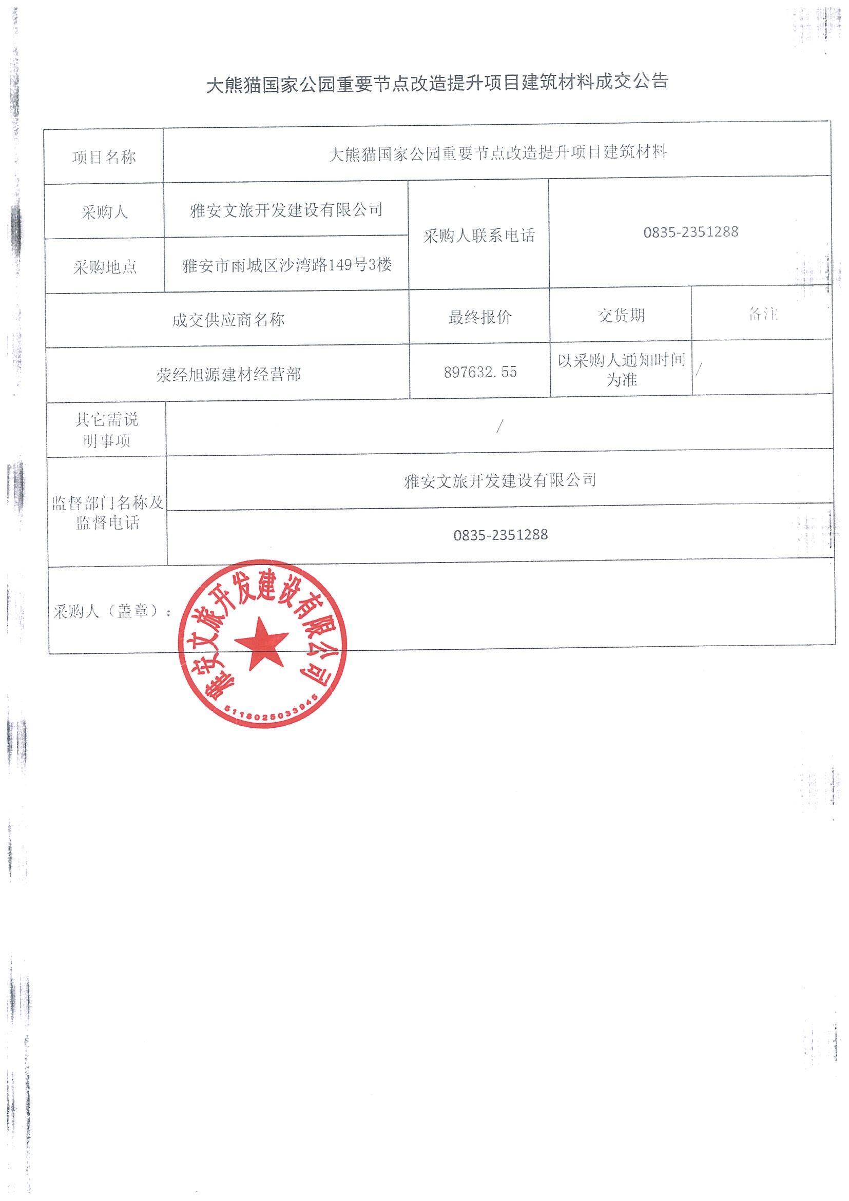 大熊貓國家公園重要節(jié)點(diǎn)改造提升項目建筑材料成交公告