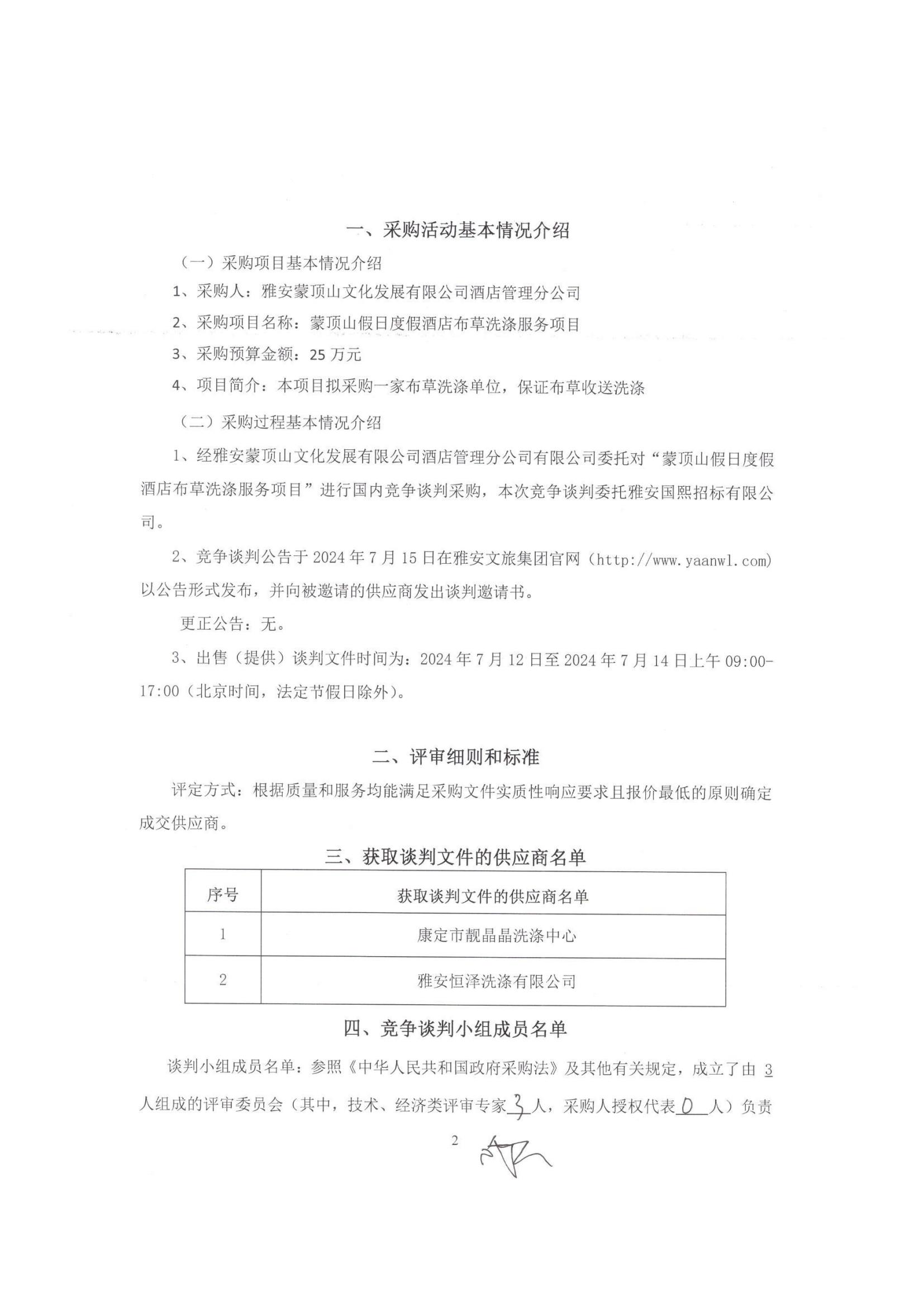 蒙頂山假日度假酒店布草洗滌服務(wù)項(xiàng)目評審報告