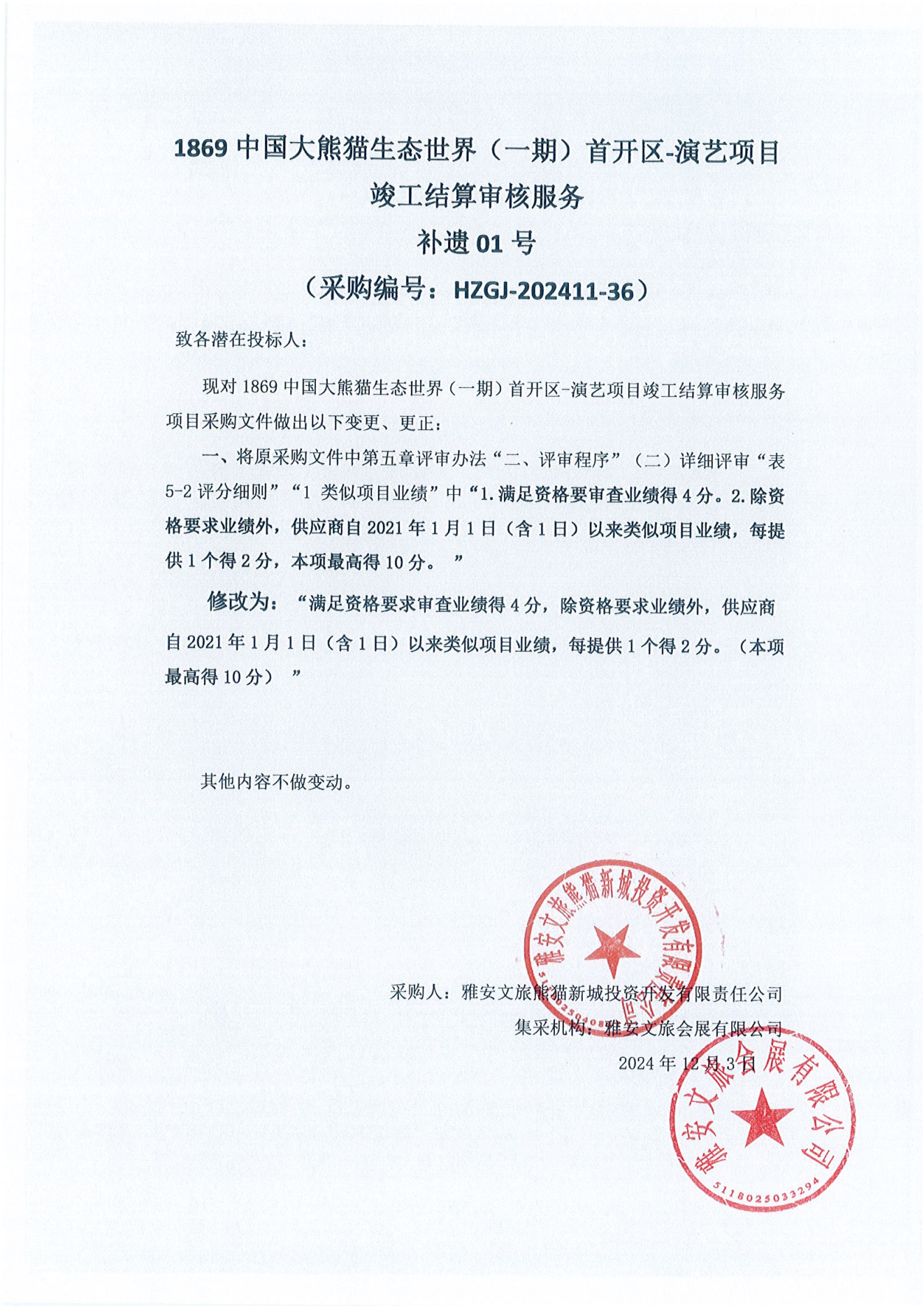 1869中國(guó)大熊貓生態(tài)世界(一期)首開區(qū)-演藝項(xiàng)目竣工結(jié)算審核服務(wù)補(bǔ)遺01號(hào)